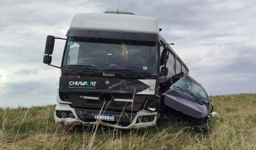Segundo impacto: Tras ese primer choque, el auto quedó sin control y cruzado sobre la mano contraria, donde fue embestido violentamente en su lateral derecho por un segundo camión, un Mercedes Benz Atego con batea (Empresa Chiavabat), que circulaba detrás del primero.